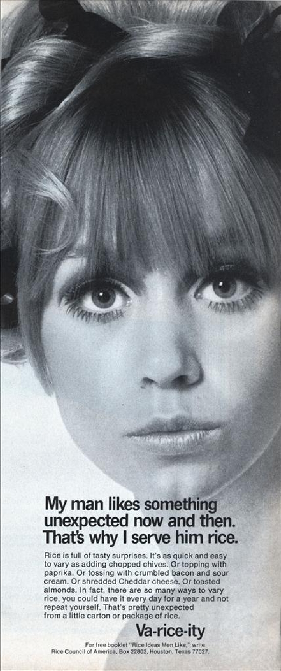 Ann and Kym, do you think it looks more 1970 than 1960? Either way, it’s remarkable how rice had to be marketed in Western countries back then, considering how much of a staple it is now.