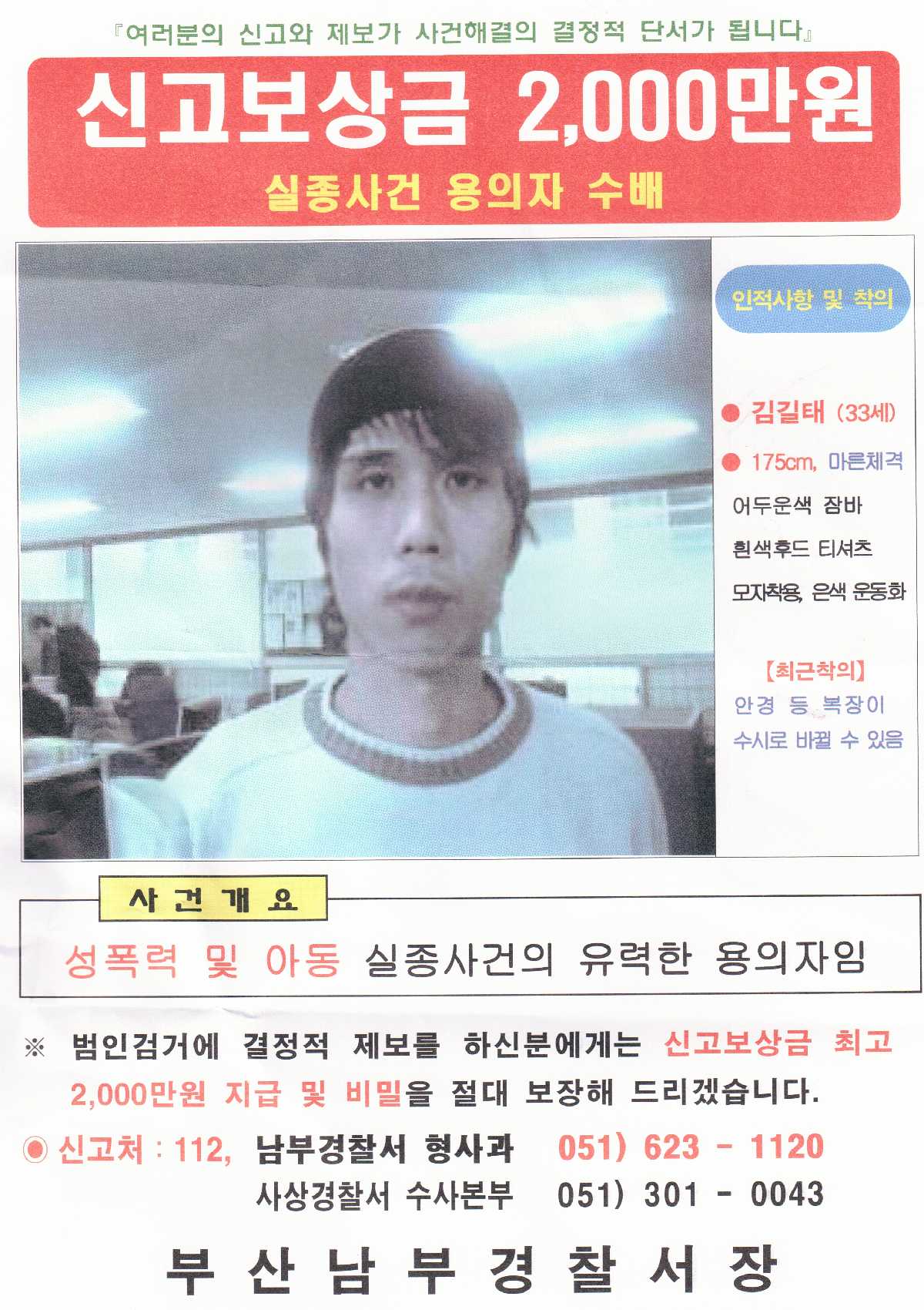 Kim Kil-tae suspect Busan 13 year-old rape murder