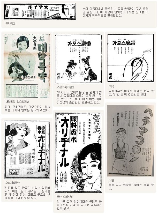 여성들은 이런 사회적 분위기 속에서 자신들의 몸을 어떻게 바라보고 관리했을까. 요즘의 여성들이 그러하듯, 그들도 자신의 몸을 대상으로 전환해 바라봐야 했다. 자기 자신을 남성의 시선으로 응시하는 법을 배우고 그것이 정답이라고 세뇌됐던 것이다. 여성들은 지식인, 예술가, 직업부인이 되기 위해 미인이 돼야 했다. 그것은 생존의 문제였다. 그렇게 여성들은 ‘S라인’이 미인이라고 말하는 남성들의 시선에 맞추기 위해 자신의 몸을 가꿔야 했다.