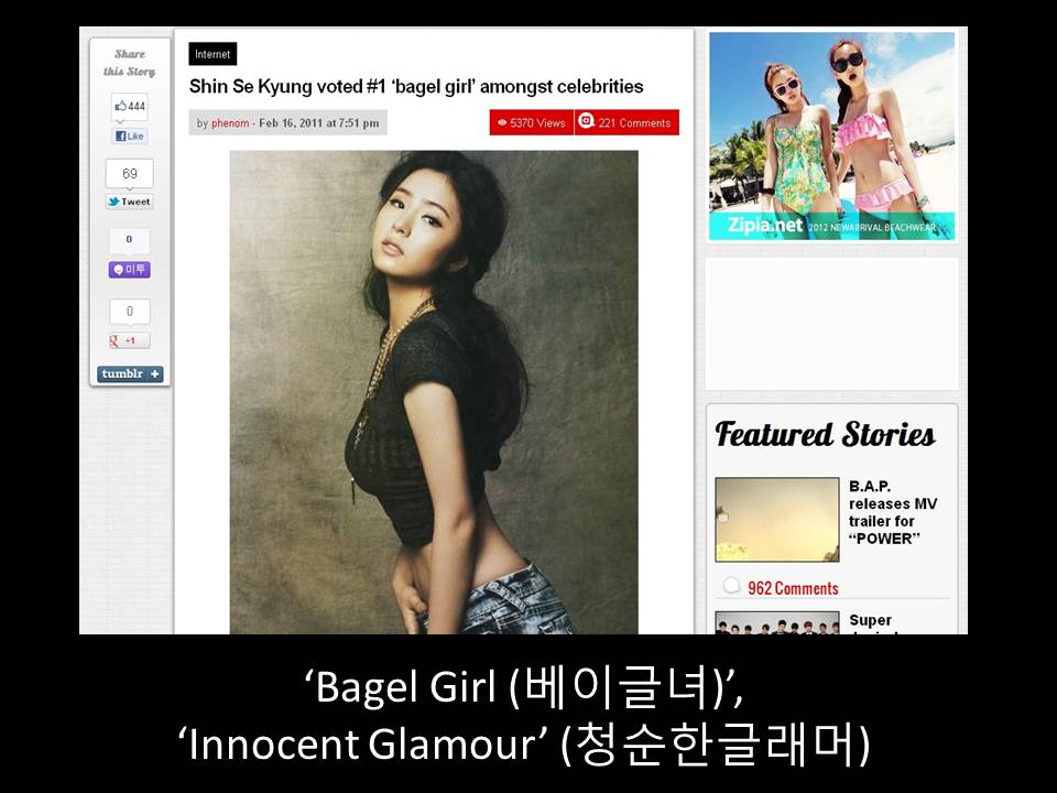 Likely, I fixated on glamour because it’s where “Bagel Girl” (베이글녀) derives from, a Korean bodyline that’s been popular for about 4-5 years. A blatantly infantilizing and objectifying term, I was happy to read back in 2011 that Shin Se-kyung at least has rejected being labeled as such (alas, Hyoseong of Secret is quite happy with it), echoing Lana Turner’s distaste at being the first “Sweater Girl.”