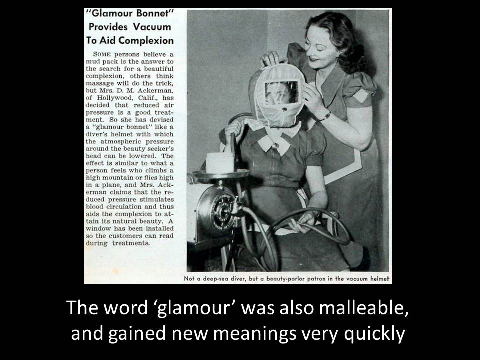 Which brings me to today’s look at the evolving meaning of “glamour” in American English, which I use to illustrate the speed of those changes in World War Two:
