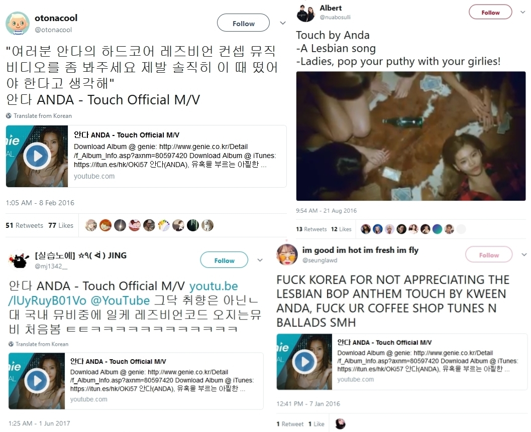 Among self-identified queer female fans of K-pop and allies on social media, I’ve yet to find a critic. And who can blame them? “Queers are generally invisible in South Korean media,” researcher Chuk Tik-sze explained in her 2016 study on their representation, “and lesbians are more completely missing.” As if to prove her point, many viewers didn’t even notice the sex in Touch when it came out in June 2015, so low were their expectations of ever encountering queer content in K-pop.