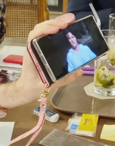 If not, then I could take a photo of my eight books by or about Jane Austen—but won’t, because no-one needs to know that three of those are actually three separate copies of Sense and Sensibility. Instead, let me offer the screenshot below, of me recently explaining “The Darcy Moment” to some sadly deprived female members of my bookclub (you know it’s me, because it’s a pink phone case). So we’re good?