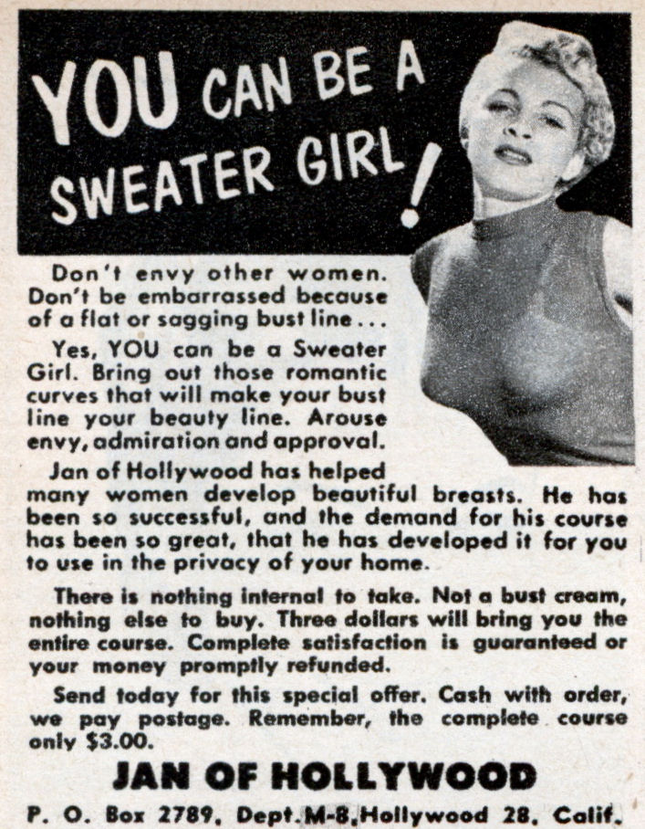 I can’t help but be reminded of the “figure flaws” or “figure faults” that overseas corset manufacturers invented a century ago, to help keep their industry afloat.