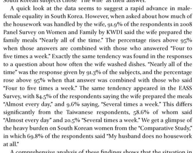 According to the International Social Survey Program (2002) and Korean General Social Survey (2006), Korea “had one of the highest number of respondents who believed ‘people who want children ought to get married.’ The only countries that scored higher than Korea were the Philippines and the United States, but the differences in the scores were not statistically significant….In the face of such strong social norms regarding marriage and reproduction, young people who are unable to marry also may not feel like they can have children. Such a phenomenon is manifested in contemporary Korean society in the form of a low fertility rate”