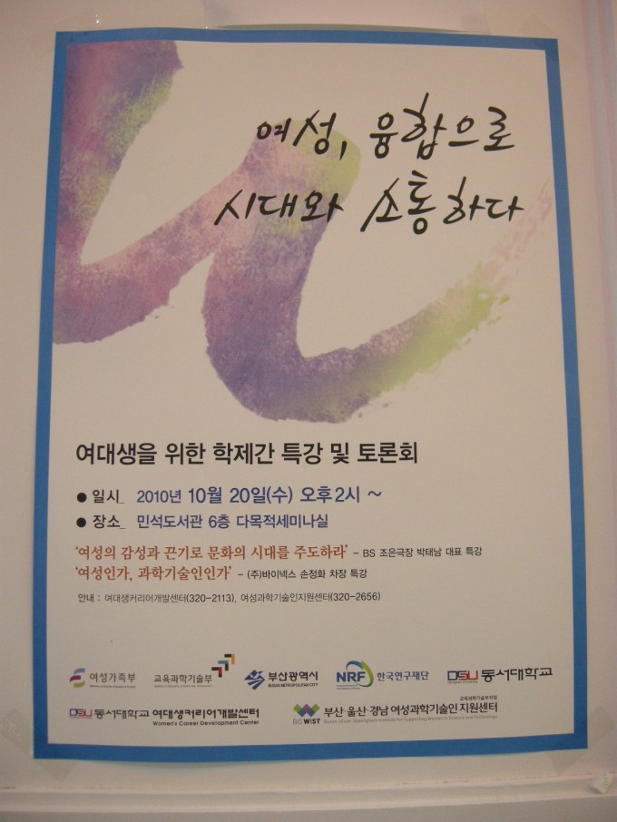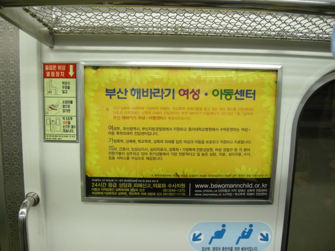 First, note that the ad is actually quite dated, mentioning that the amalgamation was effective from January the 1st for instance (although the center didn’t officially open until February the 9th), and in particular that the Ministry of Gender Equality has a supporting role in it, whereas the Ministry actually reconverted back to the Ministry of Gender Equality and Family Affairs (여성가족부/MOGEF) back in March. Presumably then, the ad has already been posted on Busan subway trains once before, probably late last year or early this one.
