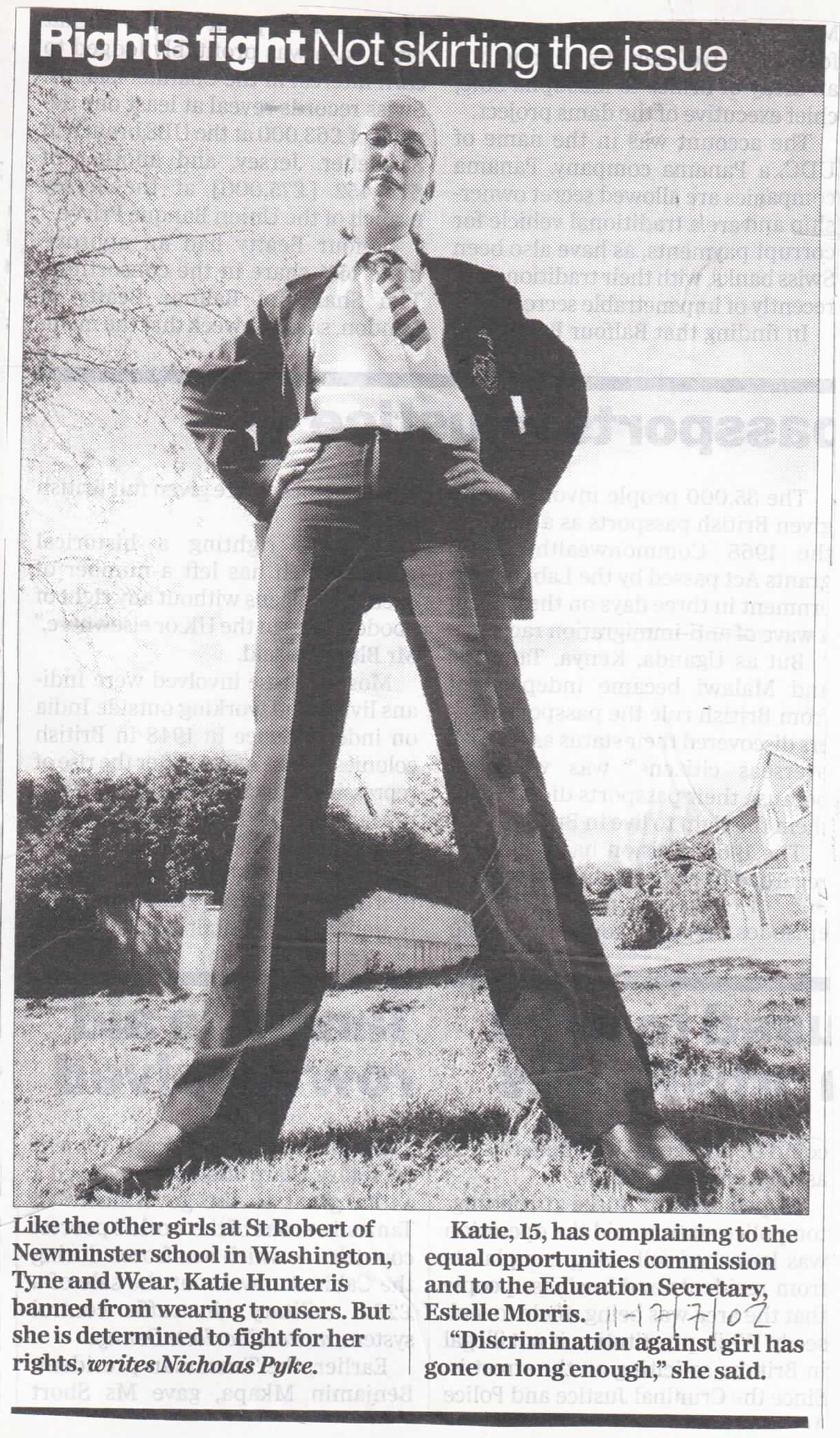Mostly I ask because as my eldest daughter approaches school age, it’s just one of many things to consider as my wife and I decide whether to send our daughters to a Korean school, to homeschool them, or—in our dreams—to send them to an expensive international school. But whatever we ultimately decide, it’s interesting to compare attitudes towards uniforms in the U.K. for instance, where most schools have in practice allowed girls to wear pants for a long time now. On the other hand, they’ve only legally been required to do so as recently as last year, and only then because it was judged to violate the rights of transsexual students.