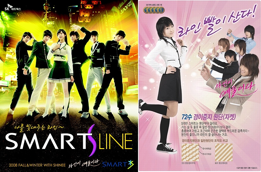 Smart, which started using stars as models in its advertisements with Song Hye-kyo in 1995, believes that, “Within our company, we don’t believe that we see especially big results because of famous models.” Smart marketing deputy section chief Sohn Jeong-joo said, “The goal of using star models, more than the direct creation of profit, is the development of our brand,” and added, “Also, using star models in a school uniform advertisement differentiates us from competitor brands, and the aspect of doing it for the association between the star and the brand is considerable.” For example, the visual process of being reminded of Smart when one sees Shinee is seen as an important marketing tool.