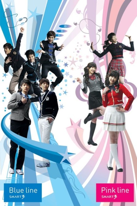 Another thing I noticed from the English-language sites reporting on [this] is that they all feature an advertisement of celebrities promoting a particular line of school uniforms, and this ad always features a girl group. Looking through the first few pages of image results on Naver, it looks like there might actually be more advertisements featuring boy bands — but I guess a group like the Wonder Girls or Girls’ Generation is more recognizable to the average reader. In his write-up, James mentions that it was only by accident that he learned how students buy their uniforms through these retailers instead of through their school. Never having worn a school uniform, that was also my assumption before arriving in Korea, but upon exploring my neighborhood I turned up three school uniform vendors – Ivy Club, Smart and Skoolooks – located within four blocks of my apartment. Between those vendors, one featured posters of only boy bands and the other two advertise with both male and female celebrity models. Interesting, then, to see what images have been used online.