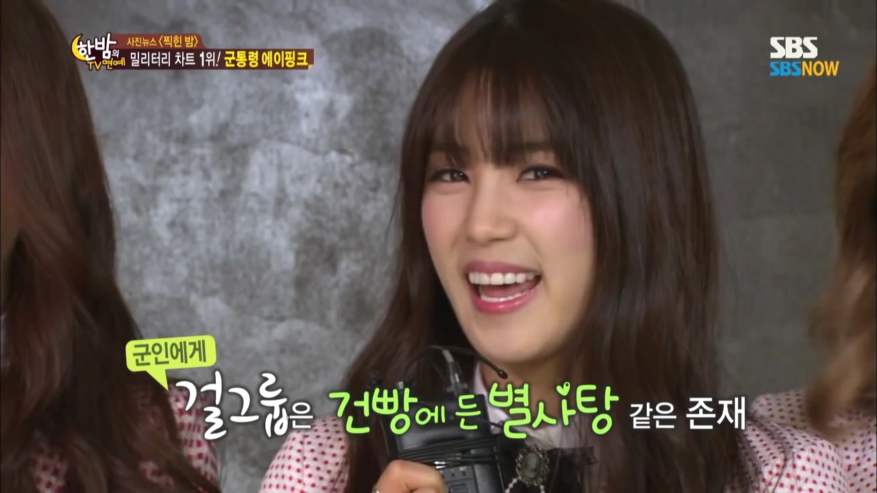 Hello, this is Nam-ju from Apink! You are having a hard time, right? Aww…But I want you to always cheer up and find strength. Hee-hee. While listening to our songs, always cheer up and eat well and plentifully…I hope you get stronger. Ha ha ha…since friends the same age as me (in our 20s) are also doing their military service I worry more and more (cry cry). Always cheer up! If you laugh, you’ll be happy! Smile! I love you Korean soldiers! (Salute!)