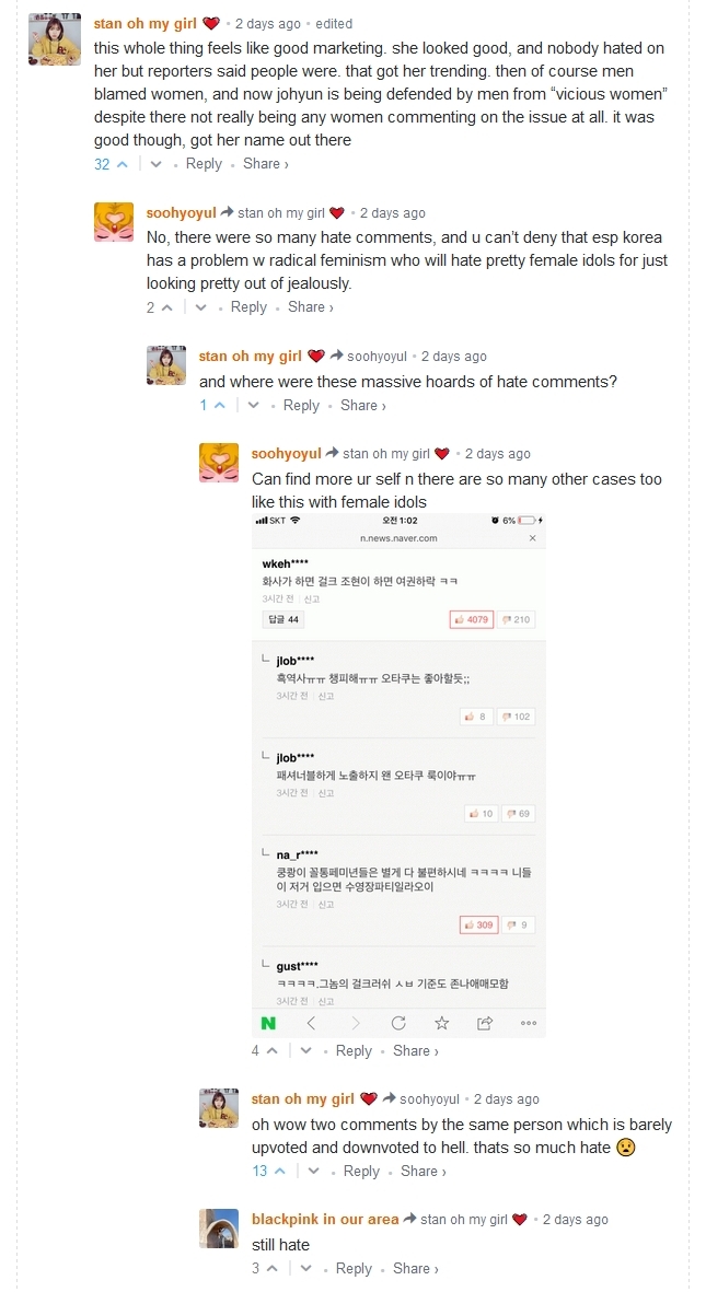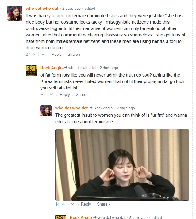 I’m going to start with 여신왕쥬 (Goddess Wang-ju), who doesn’t mince words about what impact they’ve had on her. Or, more precisely, about what impact they’ve had on Korean men, who constantly compare her to slim, big-busted K-pop stars.