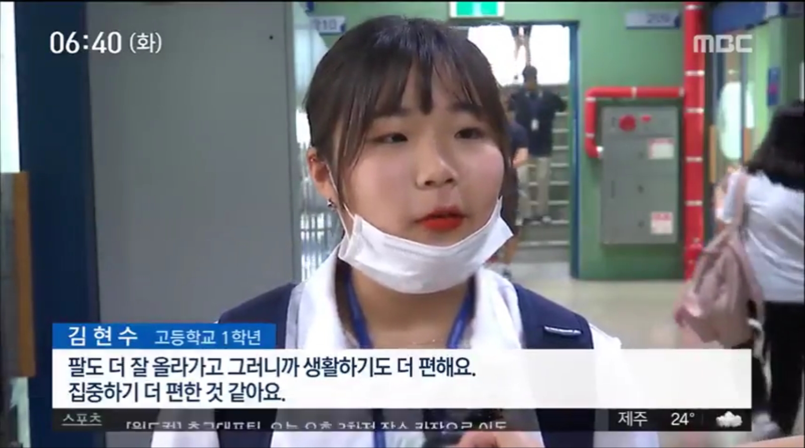 Let’s hear from some of those teens, starting with those interviewed in the following June 2018 MBC News Today report. Appropriately enough, it’s opened by everyone’s favorite news anchor Lim Hyeon-ju, who also didn’t like being told what to do—in March that year she’d become the first Korean female news anchor to wear glasses on the job, and later would go on to be the first to appear without a bra: