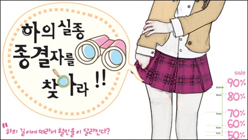 연예계를 중심으로 유행처럼 번지고 있는, 하의 길이가 매우 짧은 이른바 ‘하의 실종’ 패션을 제품 할인이벤트에 접목시켰다 여론의 뭇매를 맞은 탓이다.