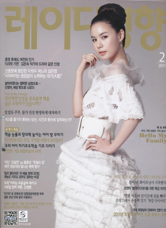 Like Laedygyeonghyang (레이디경향; Lady Trend) for instance, which at 8200 won (US$7.32) a pop, is normally much too expensive to buy just for the sake of a few pictures. But then I saw the February edition, and was hobbling to the nearest bookstore literally as soon as my bandages were changed (the nurses had to call me back inside for my injection).