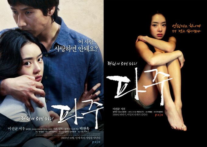 With posters like these, then you could be forgiven for thinking that Paju (파주) is about some forbidden, Lolita-like relationship between the 2 main characters. Indeed, add promotional photoshoots of Seo Woo (서우) and Lee Sun-gyun (이선균) necking, or Seo-woo perched expectantly on the side of a bed, then why wouldn’t anyone believe initial media reports that this is basically a tale of an “outrageous high-school student” who, with “a mix of innocent and provocative appeal”, falls in love with her older sister’s husband?