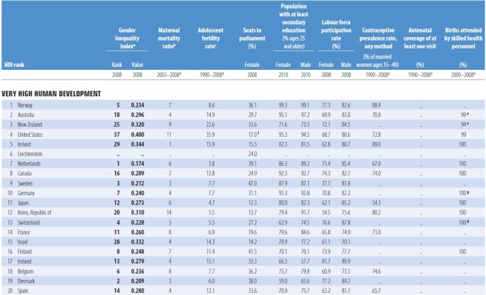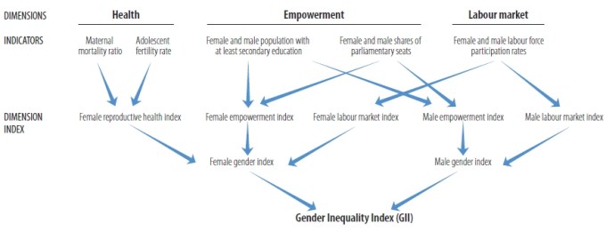 Needless to say, I did a double-take. And indeed, as most of you have probably already guessed, actually the GEM has been abolished. Instead, Korea now has a ranking of 20 in what’s called the “Gender Inequality Index” (GII), calculated according to the following criteria: