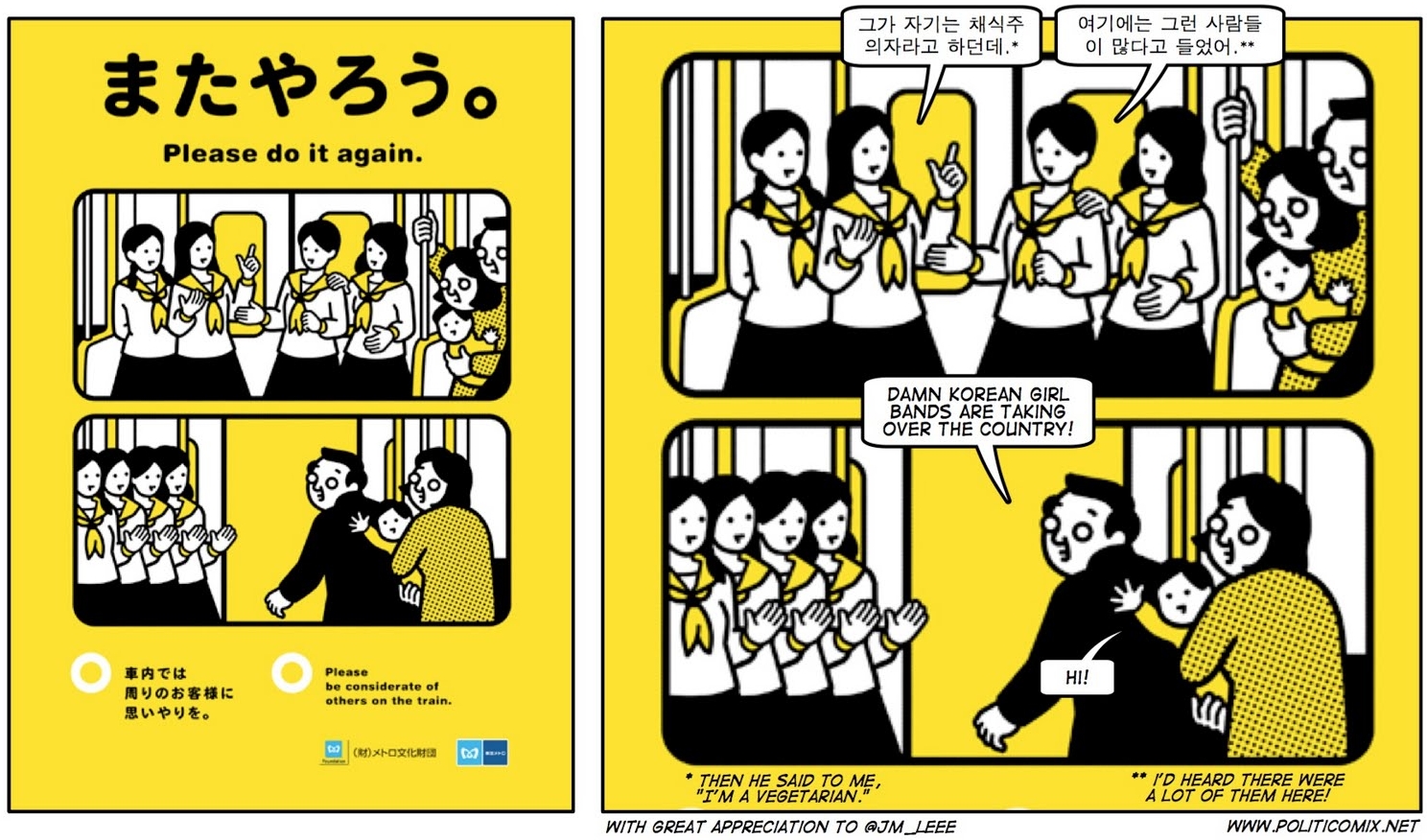 이런 상황에서 ‘기획사 너희들! 일단 남성의 성적 판타지를 정확히 자극한 것에는 10점 만점에 10점을 주겠어. 대단히 유효한 전략이었지. 하지만 어린 여자애들 데리고 더 이상 교묘하게 섹스를 팔지 마! 이제 더 이상 당하지 않아!’, 이렇게 외친다면 (비록 속은 다를지라도) ‘아니, 어떻게 이렇게 귀여운 여동생을 보고 그런 천박한 생각을…’, 하며 경멸어린 시선으로 변태 취급당할 가능성이 다분하다.